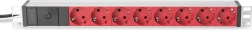 Profesionalni PDU trak DIGITUS je zasnovan za 19″ racke in ponuja zanesljivo distribucijo napajanja v razponu 220–240 V pri 50/60 Hz. Osem rdečih vtičnic schuko (CEE 7/3) z zaščitnim kontaktom je zasukanih za 35°, kar poenostavi priklop napajalnih kablov in prihrani prostor v omari.