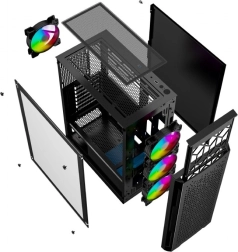 Fornax 400X je eleganten midi tower, ki daje poudarek čistemu dizajnu in učinkovitemu pretoku zraka. Perforiran sprednji panel s prašnim filtrom in prednameščeni ARGB ventilatorji zagotavljajo odlično hlajenje ter privlačne svetlobne učinke, ki jih zlahka uskladite z ostalimi komponentami.