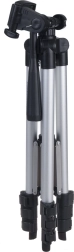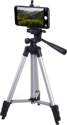 Stativ je opremljen s fotografskim navojem 1/4" za hitro pritrditev fotoaparata ali kamere. Priloženo je tudi vzmetno držalo za pametni telefon za telefone širine približno 5,5–8,5 cm. Vrtljiva glava z ročico in libelo pomaga natančno poravnati horizont in doseči profesionalno videti kadre.