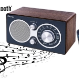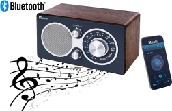 Stilski namizni radio v leseni omarici združuje klasičen dizajn in moderne funkcije. Ponuja FM (VKV) radio, bluetooth povezavo za brezžično predvajanje, osvetljeno lestvico, udobne vrtljive gumbe in vrtljivo teleskopsko anteno za boljši sprejem. Napajanje je iz 230 V.