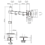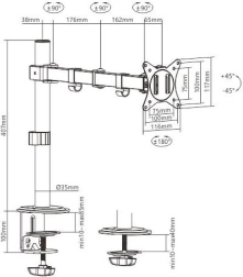Okvir ponuja varno pritrditev na mizo s pomočjo robustne sponke in omogoča različne možnosti nagiba in vrtenja monitorja.