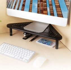 Nastavljivo stojalo za monitor ali prenosnik je izdelano iz trdnega jeklenega materiala in je zasnovano tako, da se prilega v kateri koli kot zahvaljujoč svoji trikotni obliki. Ta izdelek ponuja: