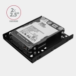 Jekleni nosilec omogoča montažo dveh diskov velikosti 2,5" na mesto ene 3,5" reže v računalniškem ohišju. Združljiv s standardnimi SSD višin 7 mm in HDD višin 9,5 mm.
