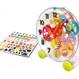 Ure po sestavi delujejo na osnovi mehanskega mehanizma, ki je poučen in zabaven. Del paketa so dekorativne nalepke, s katerimi lahko videz prilagodite po svojih željah.