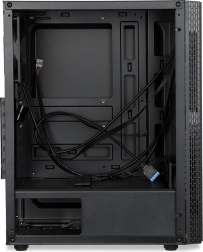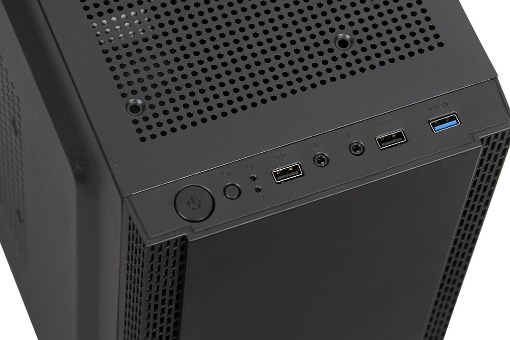 Ohišje je zasnovano z mislijo na čisto montažo – upravljanje kablov olajša vodenje kablov in izboljša pretok zraka. Trije USB priključki na sprednji plošči omogočajo hitro priključitev perifernih naprav in podatkovnih nosilcev.
