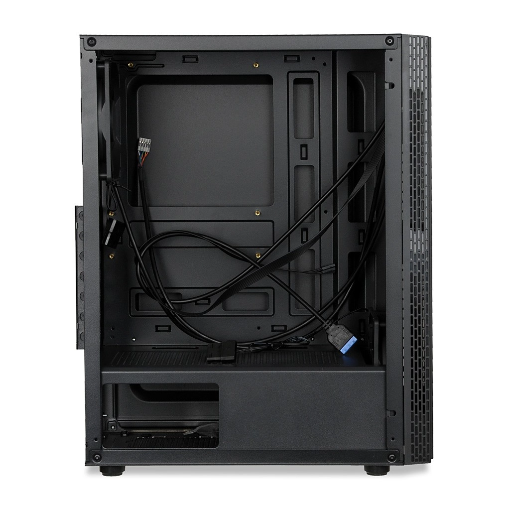 Antila 39 je zanesljivo računalniško ohišje v brezčasni črni izvedbi, ki združuje preprost videz s premišljeno funkcionalnostjo. Zgornja prezračevalna mrežica omogoča namestitev dodatnih 120 mm ventilatorjev za boljši pretok zraka, medtem ko spodnji prašni filter ščiti komponente pred nečistočami.