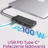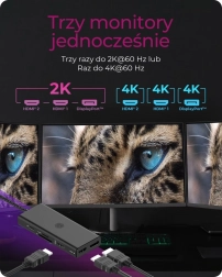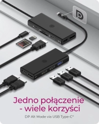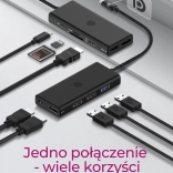 Dizajn in zmogljivost: Kompaktno aluminijasto ohišje nudi eleganten videz in omogoča priročen dostop do ključnih razširitvenih priključkov, hkrati pa zagotavlja učinkovito odvajanje toplote. Razširi svoje obzorje: Enostavno večopravilnost z možnostjo priklopa več monitorjev. Polnjenje naprav: Tehnologija polnjenja prek vrat Type-C omogoča napajanje priključenega prenosnika z močjo do 100 W. Sopotnik na poti: Zaradi kompaktne zasnove se majhna priklopna postaja prilega v vsak žep. Eleganten aluminij zagotavlja robustnost na potovanjih.
