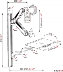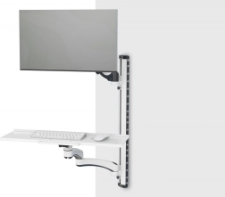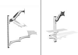Stenska roka DIGITUS združuje nosilec za monitor z ločeno polico za tipkovnico in miško, zato lahko iz ene stene ustvarite polnovredno, prostorsko varčno delovno mesto. Roka z upravljanjem kablov skrbi za red, z tekoče nastavljivo višino obeh rok pa preprosto nastavite idealno ergonomijo.