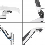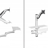 Nosilec monitorja s plinsko vzmetjo omogoča natančno in lahkotno nastavitev položaja. Podpira monitorje do 32" in teže 8 kg z nosilci VESA 75×75 in 100×100. Vrtenje do 180°, naklon ±45° in pivot 360° omogočajo popolno poravnavo slike. Dvonivojska polica za tipkovnico in miško (60 × 17,8 cm) s sprednjim ročajem povečuje udobje in stabilnost pri tipkanju.