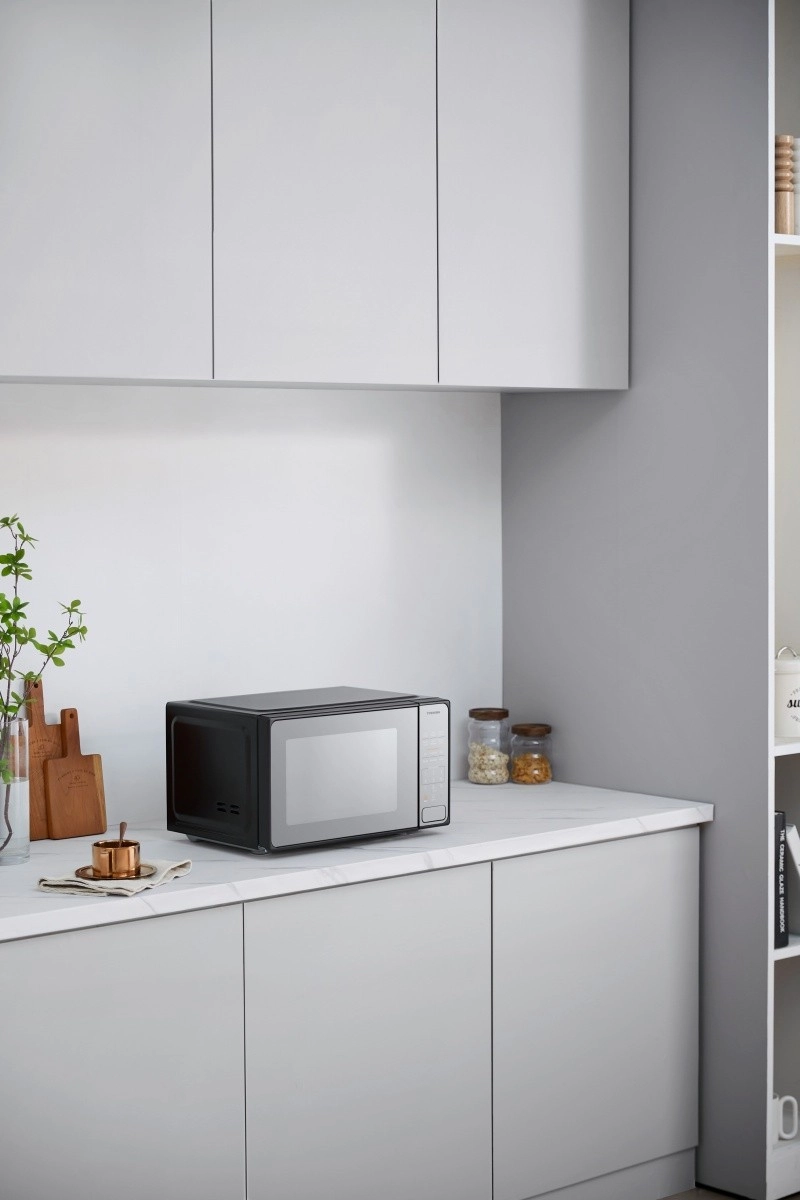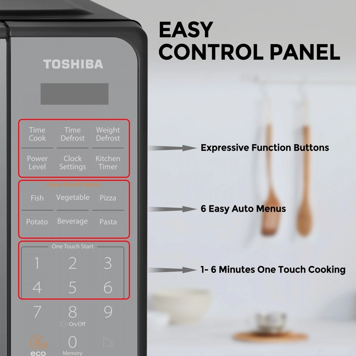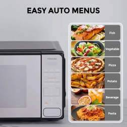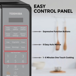 Mikrovalovna pečica Toshiba MM2-EM20PF(MB) je samostojna mikrovalovna pečica s prostornino 20 litrov s hitrimi dotikalnimi nastavitvami, 10 stopnjami moči in enostavnim odmrzovanjem.