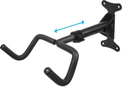 Kljuke so gumirane, da ščitijo okvir pred odrgninami, po snetju kolesa pa lahko roko preprosto zložite, tako da na steni skoraj ne ovira. Nastavljiva dolžina omogoča nastavitev razdalje kolesa od stene glede na vaše potrebe in boljšo izrabo prostora.