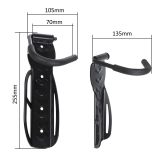 Montaža je preprosta – nosilec pritrdite na steno s priloženimi vložki in vijaki. Gumirana površina kavlja zanesljivo ščiti obroč pred odrgninami, zato je ta nosilec idealen za gospodinjstva in garaže.