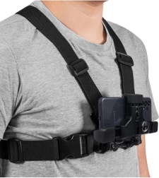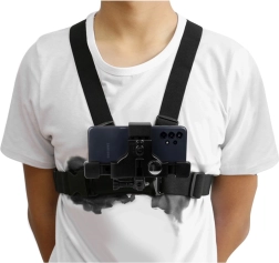 Oprtnik je izdelan iz kakovostne plastike in prožne gume za visoko vzdržljivost in udobje. Omogoča montažo pametnega telefona, fotoaparata in GoPro na sredino prsnega koša za stabilne posnetke iz perspektive prve osebe. Vgrajeno kontrolno ogledalce pomaga hitro nastaviti pravilen kader.