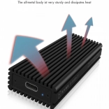 Zunanja škatla ICY BOX je popolnoma zasnovana za zmogljive SSD diske NVMe M.2, z visokohitrostno povezavo USB 3.1 (Gen 2) tipa C, ki omogoča prenos podatkov s hitrostjo do 10 Gbit/s. Močna aluminijasta konstrukcija zagotavlja vzdržljivost in učinkovito odvajanje toplote.