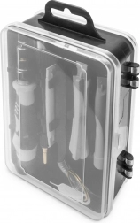 Vzdržljiv, prozoren etui z zanesljivim zapiranjem varno drži vse dele na mestu in omogoča hitro najdbo pravega orodja doma ali na poti.