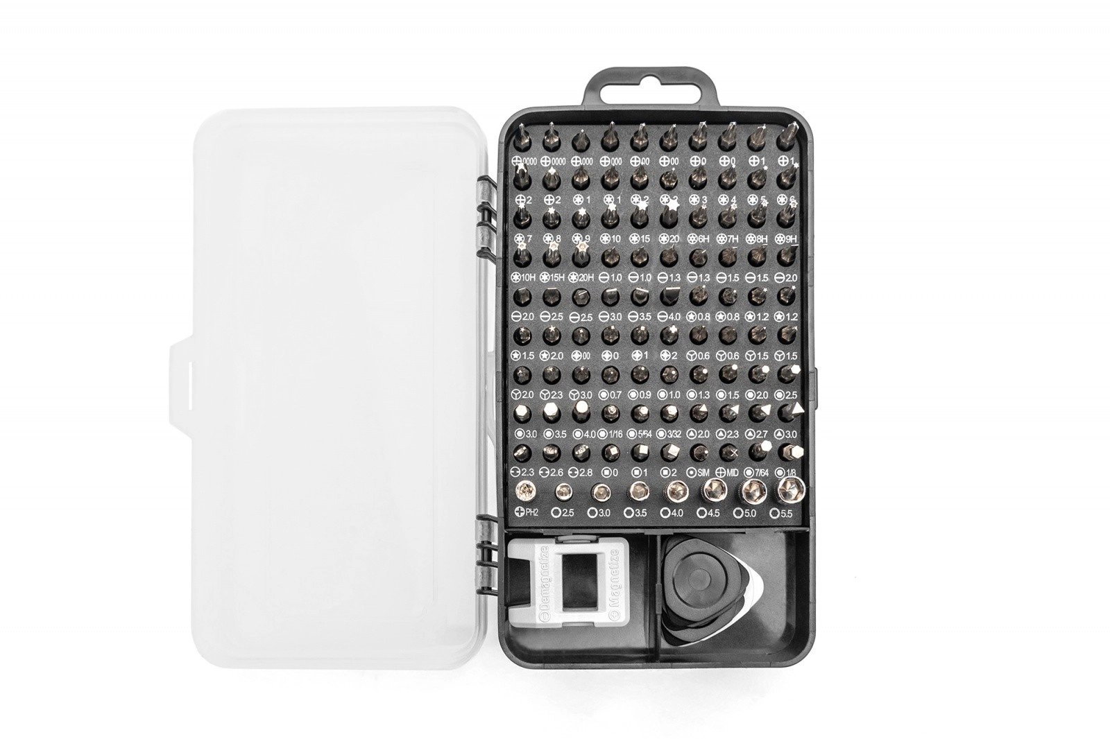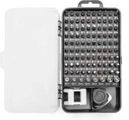 Idealno za servis telefonov in tablic, menjavo PC komponent, popravila konzol, fotoaparatov, ur in očal ter modelarstvo. Pametne podrobnosti, kot je tristopenjski izvlečni držalnik bitov, pospešijo delo in olajšajo rokovanje tudi v tesnih prostorih.