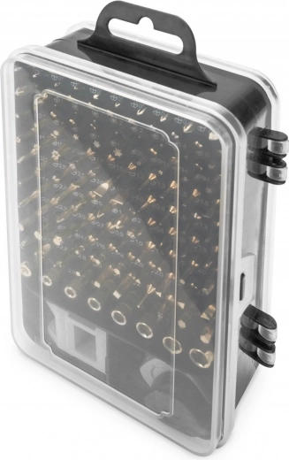 S tem profesionalnim kompletom imate vedno pri roki pravo orodje. Obsežen izbor natančnih bitov iz kakovostnega jekla S2 in Cr‑V zagotavlja dolgo življenjsko dobo, natančnost in zanesljivost pri vsakodnevnih popravilih elektronike in fine mehanike. Kompakten, dvostranski etui ohranja vse pregledno urejeno in lahko dostopno.