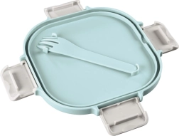 Na spodnji strani pokrova boste našli vilico, tako da imate vse na enem mestu, da lahko obrok pojeste. Testenine, zelenjava ali celo riž ne bodo težava. Ko končate z obrokom, lahko škatlo udobno pomijete v pomivalnem stroju. Praktično zapiranje s sponko zelo dobro tesni, zato vam ni treba skrbeti, da bi se vsebina nepričakovano razsula po torbi.