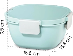 Nič ne izboljša razpoloženja tako kot kratek odmor za topel obrok, zato lahko to posodo pogrejete v mikrovalovni pečici. Svoj najljubši obrok pripravite dan prej in ostal bo svež in hrustljav. Izdelek je namenjen eni porciji, zato vzemite s seboj na primer riž s tofujem ali testenine. Odlično se prilega tudi za hladne prigrizke, kot sta sadje ali solata.