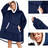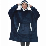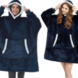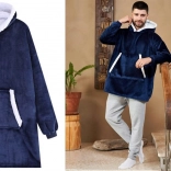 Ta topel in mehak kapucar-deka je ustvarjen za trenutke počitka. Njena temno modra barva in bela flis podloga zagotavljata ne le toplino, temveč tudi stil. Zaradi velikih rokavov se boste počutili udobno, ne da bi vas kaj omejevalo. Idealna za zimske večere pred televizijo ali pri branju najljubše knjige.