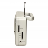 Z dvojnim napajanjem lahko poslušate kjerkoli – iz omrežja 230 V ali udobno na baterije. Teleskopska antena zagotavlja boljšo občutljivost in stabilnost signala, vgrajen ročaj pa olajša prenašanje. Priključek za slušalke omogoča zasebno poslušanje v vsaki situaciji.