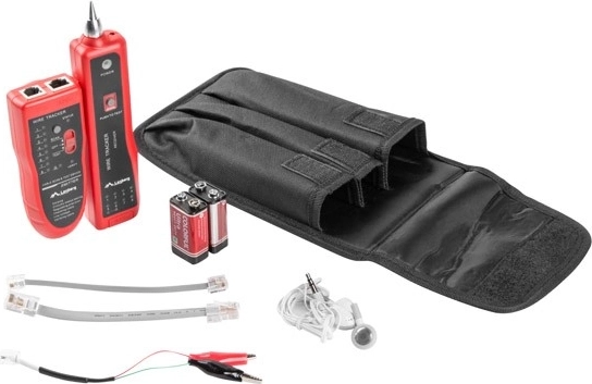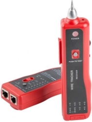 Tester vključuje oddajnik in sprejemnik, ki omogočata testiranje kontinuitete kablov ter sledenje vodnikom z ključnimi RJ45 vrati.