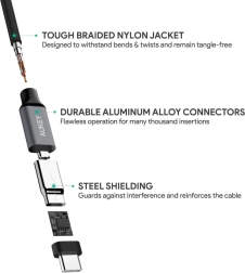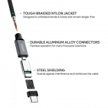 Vzdržljiv najlonski oplet ščiti kabel pred lomljenjem in obrabo, 2‑metrska dolžina pa prinaša udobje doma, v pisarni in v avtomobilu. Združljivost s Quick Charge 4.0/3.0/2.0 in tehnologijo AiPower zagotavlja široko uporabo med napravami z USB‑C.