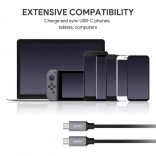Kabel AUKEY USB‑C na USB‑C je zanesljiva rešitev za polnjenje prenosnikov, tablic in telefonov. Zahvaljujoč podpori USB Power Delivery do 60 W energijo dopolni hitro in varno, medtem ko kakovostna izdelava s pozlačenimi konektorji in večslojnim oklopljenjem zagotavlja stabilen prenos podatkov tudi pri vsakodnevni rabi.