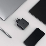 Kompaktno ohišje z zložljivim omrežnim vtičem je idealno za na pot in v pisarno. Univerzalna združljivost s protokoli hitrega polnjenja zagotavlja udobje – en polnilec za več naprav, manj kablov in vtičev.