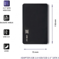 Zunanje ohišje za trdi disk za 2,5'' HDD/SSD diske ponuja idealno rešitev za varno prenašanje vaših podatkov. Uživajte v hitrem in enostavnem urejanju datotek zaradi visoke združljivosti s sistemi Windows in Mac.