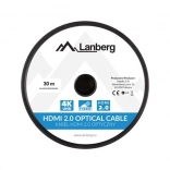 Aktivni optični kabel HDMI 2.0 znamke LANBERG z dolžino 30 m zanesljivo prenaša video in zvok v 4K@60 Hz brez izgube kakovosti. Zahvaljujoč enosmerni povezavi in jasnemu označevanju konektorjev zagotavlja brezhibno namestitev. Podpira HDR, 3D, ARC in CEC 2.0, ima pozlačene konektorje in je odporen proti EMI motnjam.