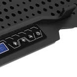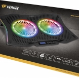 Ta univerzalna hladilna podloga je zasnovana za učinkovit odvod toplote in tih način delovanja. Trdna kovinska perforirana mreža izboljšuje pretok zraka in ščiti napravo, medtem ko RGB osvetlitev vašemu delu doda stil. Vgrajena LCD plošča omogoča hitro nastavitev hitrosti ventilatorjev in svetlobnih učinkov.