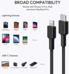 Združljivost: Če imate iPhone 8 ali novejši, priporočamo nakup polnilnika ali prenosne baterije AUKEY z USB-C PD priključkom za doseganje hitrega polnjenja. Kabel Lightning USB C je priložen v paketu.