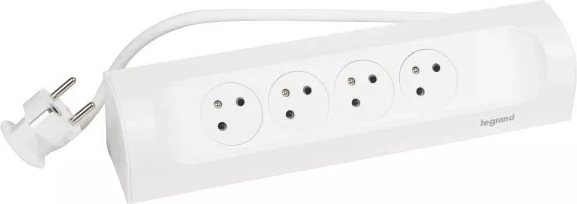 Kotna podaljševalna kabelska letev Legrand s štirimi ozemljenimi vtičnicami v beli izvedbi je odlična izbira za prostore, kjer je treba varčevati s prostorom. Zaradi trikotne oblike jo je mogoče navpično namestiti v kote sten ali vodoravno na stik med steno in delovnim pultom.
