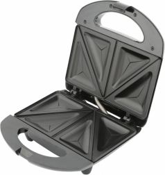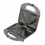 Praktična zasnova nudi kapaciteto do 4 trikotnih sendvičev v enem ciklu, zaklepno zaponko za varno peko in svetlobni indikatorji za jasno obveščanje o delovanju. Toplotno izolirano ohišje se med delom ne pregreva, kar povečuje varnost in udobje uporabe. Elegantna črna izvedba z leskom in jeklenim panelom se odlično poda v moderno kuhinjo.