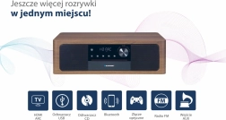- Široke možnosti povezovanja – Bluetooth, optični vhod, USB, AUX 3,5 mm, FM sprejemnik s 40 prednastavitvami.