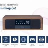 Iščete stilsko in vsestransko rešitev za domače poslušanje? Mikrosistem BLAUPUNKT MS22BT združuje vrhunske funkcije v eni kompaktni leseni omarici: povežite televizor prek HDMI ARC, pretakajte brezžično prek Bluetootha, predvajajte priljubljene CD-je ali MP3 z USB-ja in nastavite FM radio z do 40 prednastavitvami.