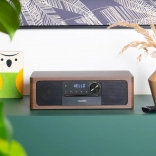Eleganten mikrosistem v lesenem dizajnu združuje HDMI ARC (TV Audio Connect), Bluetooth, CD/MP3, USB, AUX in FM radio v eno kompaktno napravo. Zahvaljujoč moči 50 W RMS, izenačevalniku in funkciji Loudness ponuja čist in dinamičen zvok za dom in manjše zabave. Vgrajen LED zaslon z prikazom časa in budilko olajša vsakodnevno uporabo.