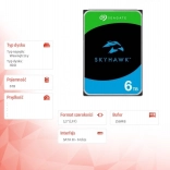 Zanesljiv trdi disk za neprekinjeno snemanje v nadzornih sistemih. Seagate SkyHawk 6 TB s firmwareom ImagePerfect obvlada do 64 kamer v ločljivosti HD, ponuja SkyHawk Health Management za preventivo in obnovo, hitrejši RAID RapidRebuild ter 3-letno storitev Rescue za zaščito podatkov.