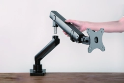 - Ergonomski dizajn: Nosilec podpira monitorje do 8 kg, vzmetni mehanizem olajša individualno nastavitev položaja zaslona.