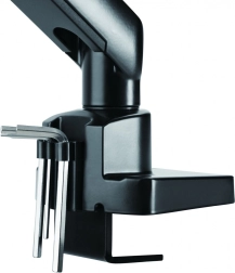 Nosilec lahko pritrdite na mizo z osnovo s sponkami, kar prihrani prostor. Alternativno ga je mogoče neposredno pritrditi skozi prehodko mize.