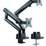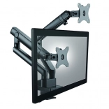 Praktično dvojno držalo za monitorje do 32" s prenosnim mehanizmom omogoča enostavno montažo dveh monitorjev. Odstranljivi VESA adapterji in domiselna napeljava kablov zagotavljajo enostavno uporabo in organizacijo prostora.