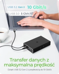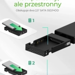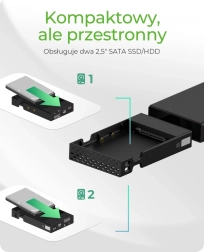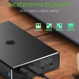 Razširite kapaciteto in poenostavite upravljanje podatkov z zunanjim aluminijastim ohišjem za dva 2,5" SATA SSD/HDD. Naprava podpira štiri načine: RAID 1 za maksimalno zaščito, RAID 0 za hitrost, SINGLE za neodvisne diske in LARGE za združitev kapacitete. Povezava USB 3.2 Gen 2 (10 Gb/s) zagotavlja bliskovito kopiranje in gladko delo z obsežnimi projekti.