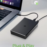 Lahka in kompaktna zasnova brez ventilatorja deluje popolnoma tiho, medtem ko natančno izdelano aluminijasto ohišje učinkovito odvaja toploto. Vgradnja diskov je preprosta, z Plug & Play pa lahko začnete takoj – brez gonilnikov in odvečne konfiguracije. Idealno za fotografe, ustvarjalce videa, IT‑skrbnike in vsakodnevno varnostno kopiranje.