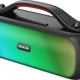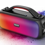 Uživajte v izrazitem in čistem zvoku s prenosnim Bluetooth zvočnikom, ki združuje moč 60 W z efektivnim LED panelom. Zahvaljujoč zaščiti IPX5 brez težav prenese škropljenje vode in nenadno vreme, zato je idealen za vrt, teraso in potovanja. LED učinke lahko preprosto izklopite, ko želite le glasbo brez luči.