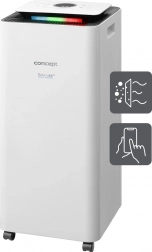 Razvlaževalnik lahko upravljate od koder koli prek mobilne aplikacije Concept Home, ki je brezplačno na voljo za iOS in Android. Na daljavo ga lahko vklopite ali izklopite, izberete želeni način in preverite trenutno stanje zraka v prostoru, kjer se nahaja. Z mobilno aplikacijo lahko ustvarite natančen časovni načrt delovanja. Dovolj je, da izberete dan, časovno obdobje in stopnjo razvlaževanja, enota pa se bo samodejno zagnala ob nastavljenem času. Izdelek je združljiv tudi z aplikacijo Tuya Smart.