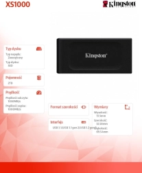 Kompaktni zunanji SSD KINGSTON XS1000 s kapaciteto 2 TB ponuja bliskovite hitrosti prenosa, zanesljivo varnostno kopiranje in elegantno, lahko zasnovo za preprosto prenašanje. Zahvaljujoč vmesniku USB 3.2 Gen 2 dosega hitrosti branja do 1050 MB/s in pisanja do 1000 MB/s, pri čemer ostaja združljiv za nazaj s starejšimi napravami.