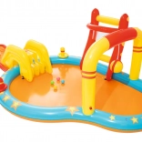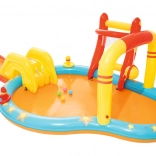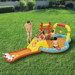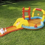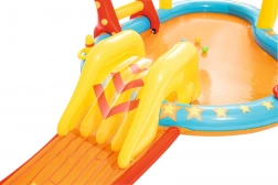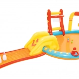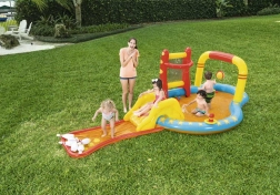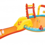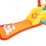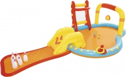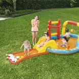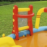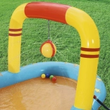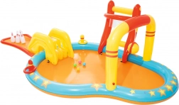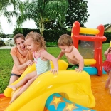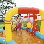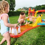 Privoščite otrokom poletje, polno smeha in gibanja, z napenjalnim vodnim igralnim središčem BESTWAY. Združuje plitek bazenček, odstranljiv tobogan in zabavne igre, kot so kegljanje, koš in metanje obročev. Zahvaljujoč vgrajenemu pršilniku je igra osvežujoča tudi v vročini. Enostavna namestitev, varen plitek prostor in bogata oprema zagotavljajo neskončno zabavo, aktivno gibanje ter prijetno osvežitev v poletnih dneh.