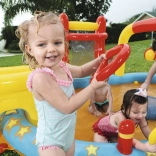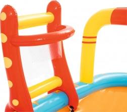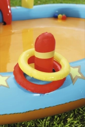 Bogata oprema, vključno s keglji, napenjalnimi obroči, žogicami in košem, spodbuja različne aktivnosti ter razvija koordinacijo in motoriko. Starši bodo cenili preprost izpust vode zahvaljujoč izpustnemu ventilu in enostavnemu vzdrževanju. Odlično za popoldansko razigranost s prijatelji in družinsko veselje.