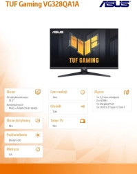 ASUS TUF Gaming VG328QA1A je 32-palčni igralni monitor, zasnovan za igralce, ki zahtevajo stabilno zmogljivost, minimalen zamik in široke možnosti prilagajanja. Zahvaljujoč robustni TUF konstrukciji in sodobnemu dizajnu se odlično poda v vsako gaming postavitev.